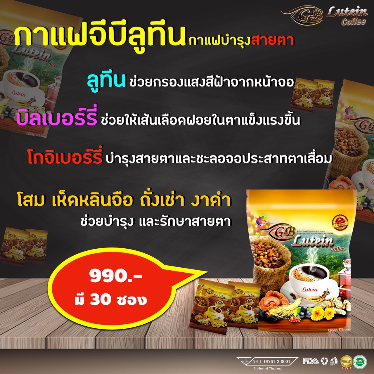 กาแฟจีบีลูทีน กาแฟจีบีลูทีน กาแฟเพื่อสุขภาพ & บำรุงสายตา 1 ถุง (30 ซอง) ราคาปกติ 690 บาทโปรโมชั่นพิเศษ 2 ถุง ราคา 990 บาท (ราคาปกติ 1,380 บาท) ต้องการสั่งซื้อ กาแฟจีบีลูทีน โทร: 063-248-7159 ไลน์: @208uvfyz Facebook iconFacebookTwitter iconTwitterLINE iconLine
