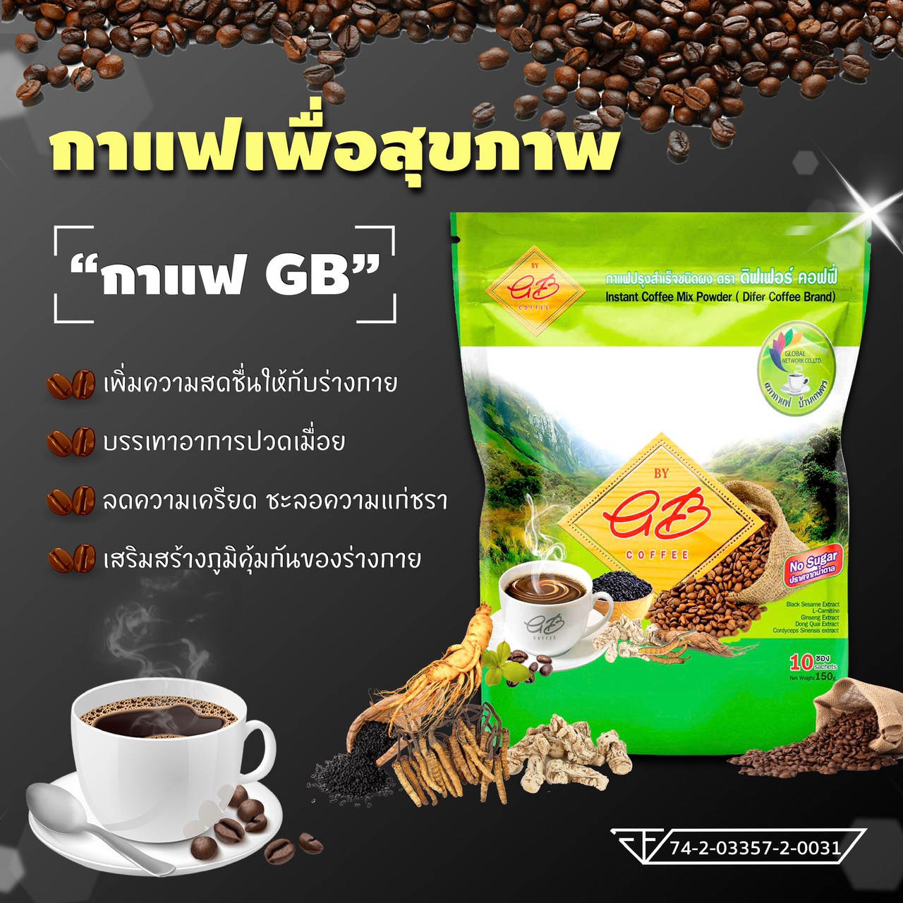 กาแฟจีบี กาแฟจีบี กาแฟของคนรักสุขภาพ 1 ถุง (10 ซอง) ราคา 150 บาท ต้องการสั่งซื้อ กาแฟจีบี โทร: 063-248-7159 ไลน์: @208uvfyz Facebook iconFacebookTwitter iconTwitterLINE iconLine